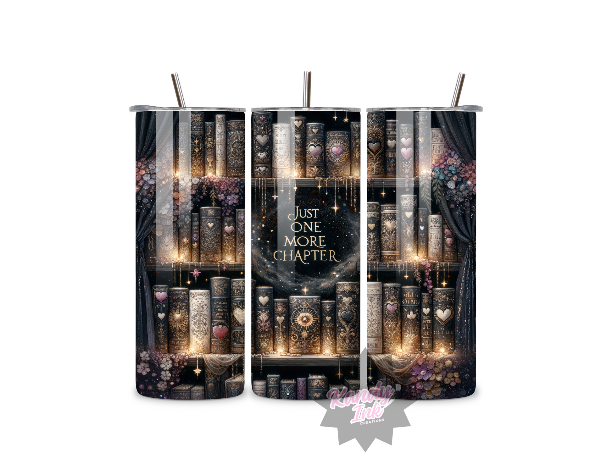A must-have for any book lover! Our 20oz tumbler is made of durable stainless steel and features a magical bookshelf design. Keep your drink at the perfect temperature while enjoying your favorite book. A unique and functional addition to your collection.